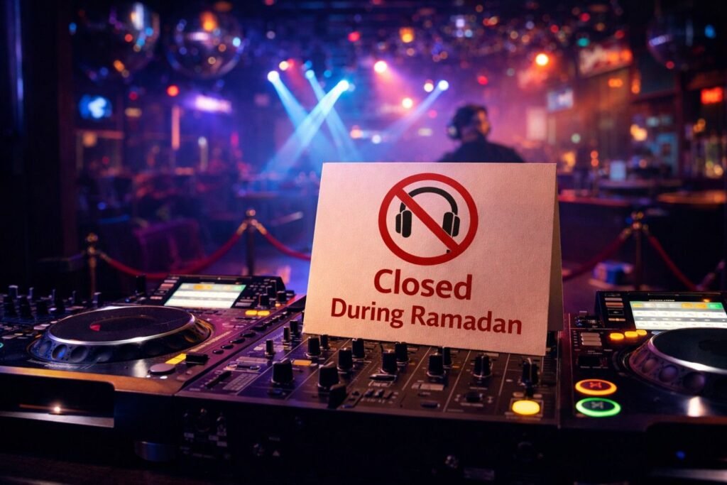 Nightclubs shut down almost entirely during Ramadan in Dubai. Live music, DJ sets, and loud entertainment aren’t permitted during the holy month. The clubs that define Dubai’s nightlife scene go dark for 29 or 30 days straight.